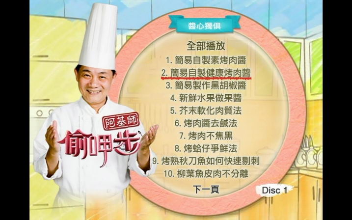 阿基師偷呷步-醬心獨具(醬料燒烤篇) 針對食材處理、料理過程、提升食物鮮美度的各種實用小技巧 國語發音繁體中文字幕版(DVD一片裝)